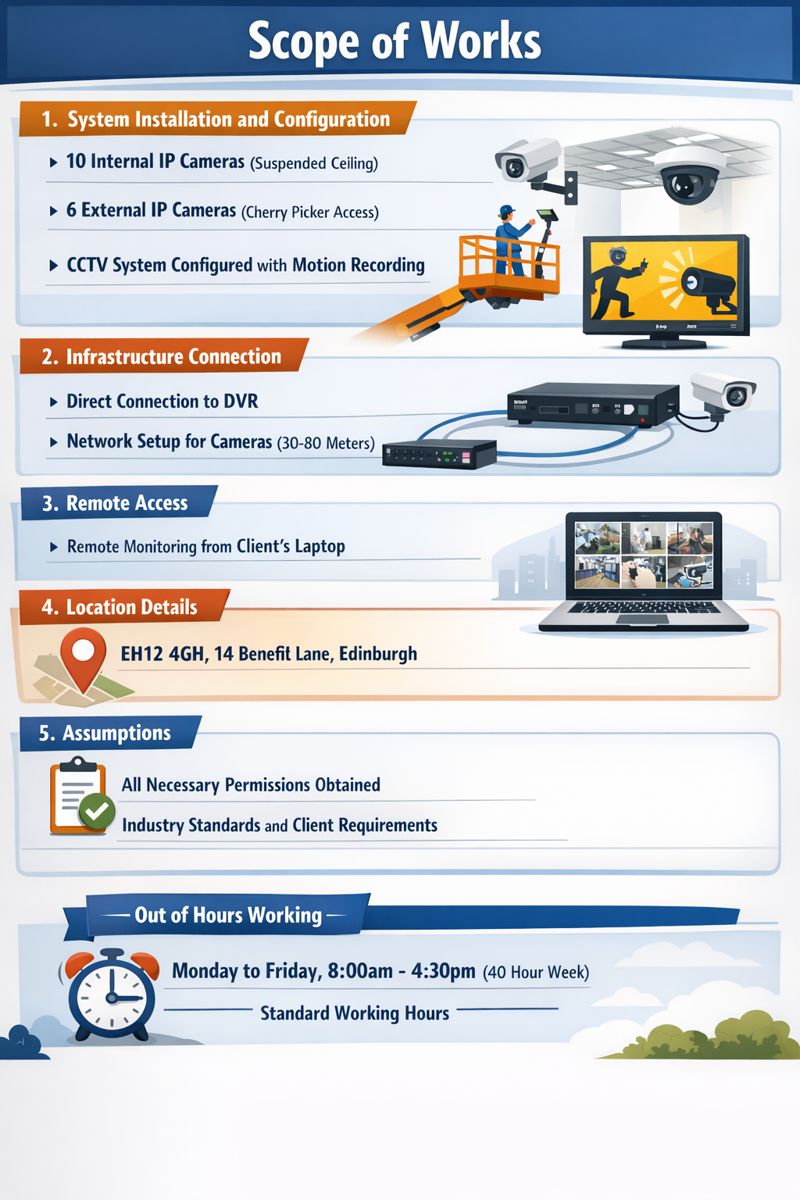 Technical scope written in clear language, ensuring the customer fully understands what is included – reducing disputes and variations.